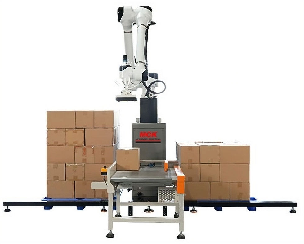 Robô colaborativo, é um tipo de robô industrial que pode trabalhar com segurança ao lado de pessoas. Sua flexibilidade e capacidade de se adaptar facilmente a diferentes produtos os tornam extremamente úteis para linhas de paletização.